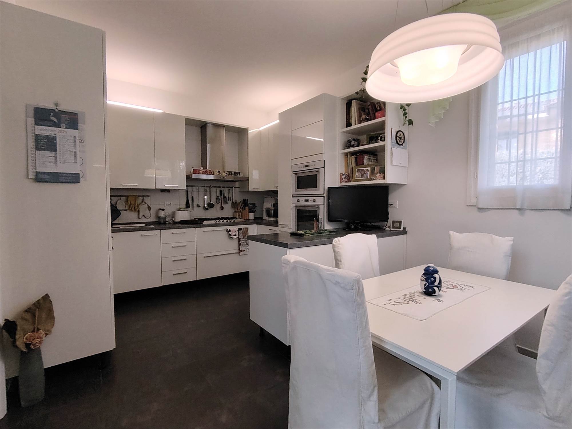 Frontalmente alla sala da pranzo troviamo la cucina abitabile da cui si accede all'ampio terrazzo utilizzabile per pranzi/aperitivi con gli amici.