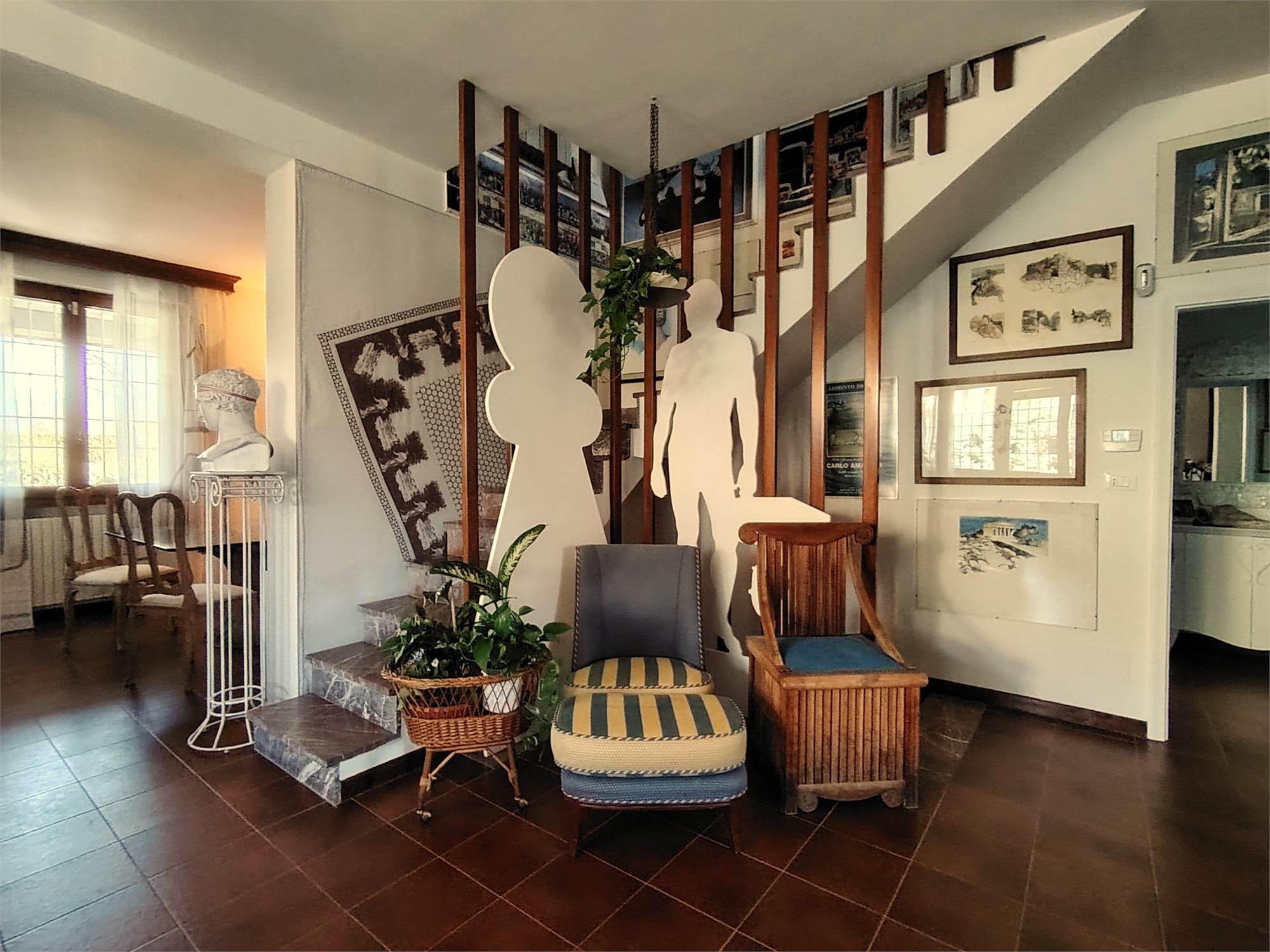 Salendo al primo piano mansardato troviamo una zona pluriuso studio/camera completa di bagno con accesso al secondo terrazzo abitabile ed ampio sottotetto.