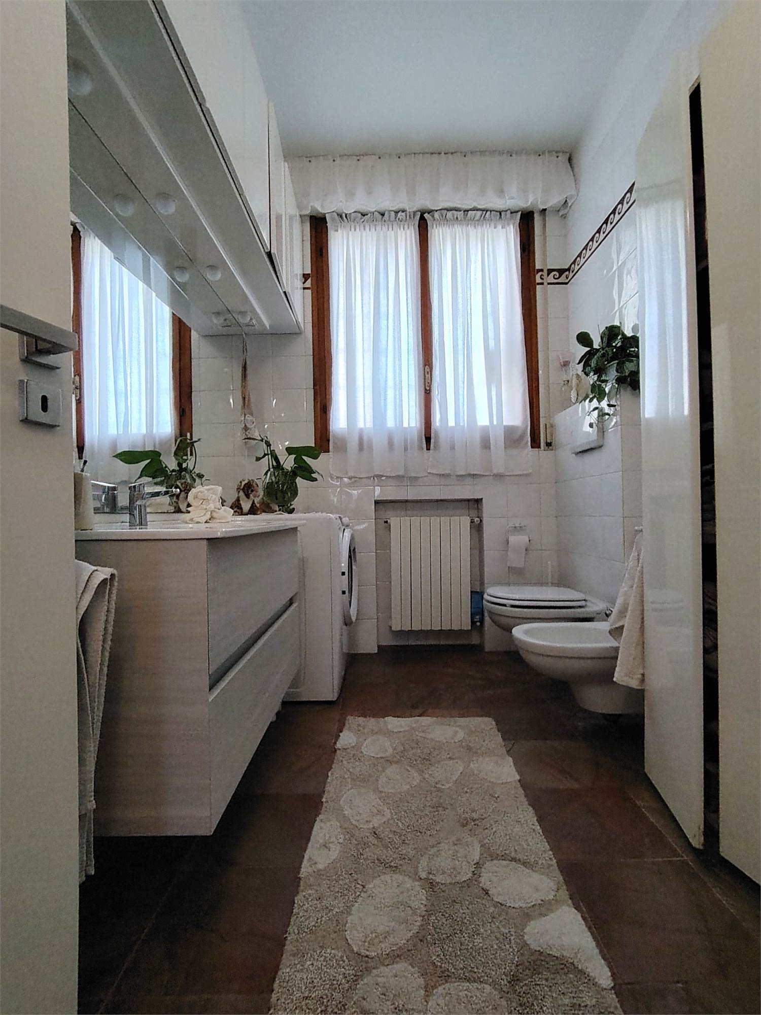 Entrando si rimane ammaliati dalle dimensioni della tripla zona giorno in open, salotto, sala da pranzo, sala biblioteca, disimpegno arredabile da cui si accede alla zona notte composta da due camere matrimoniali e due bagni entrambi finestrati.