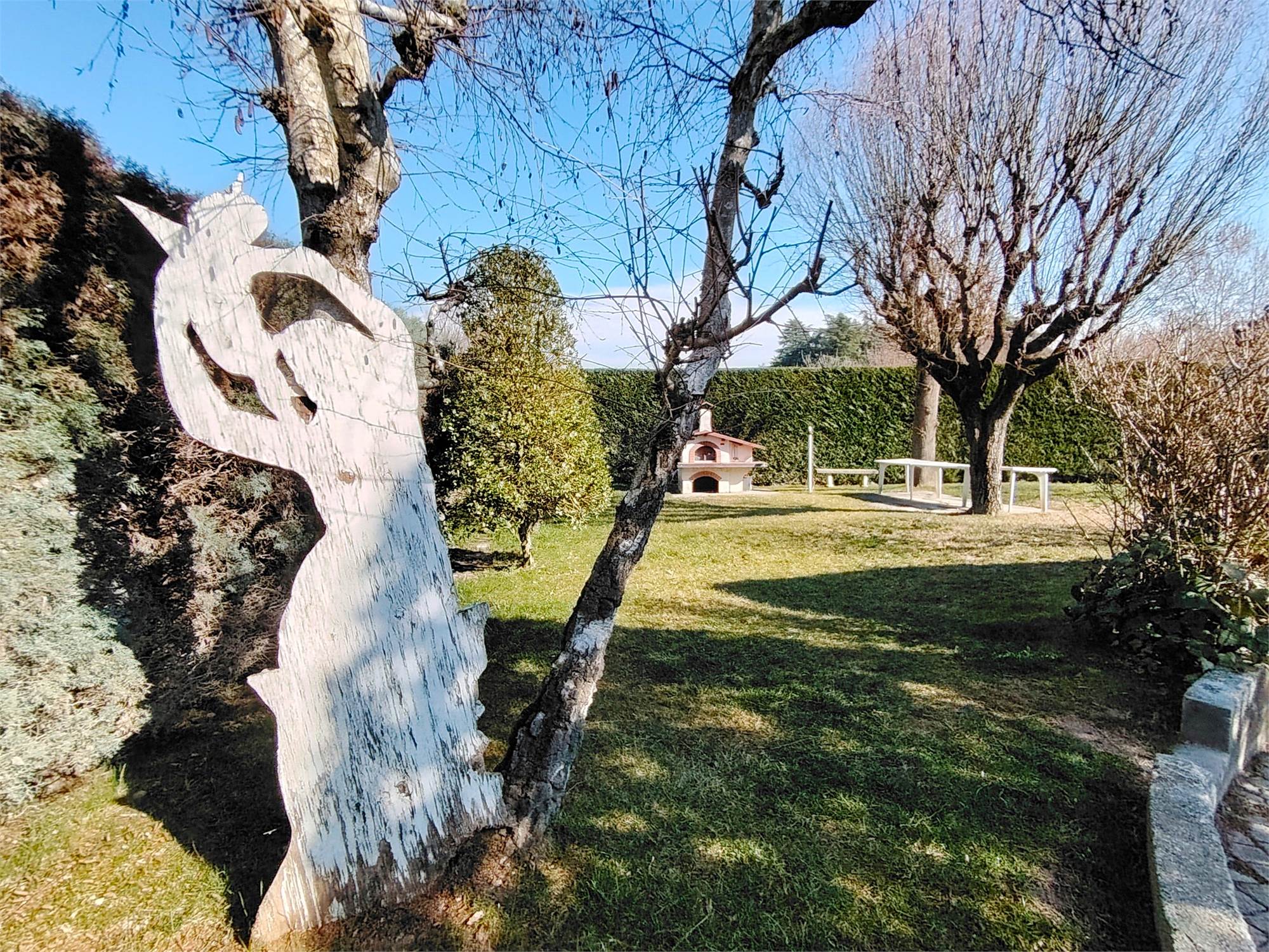 La villa è circondata da un ampio e bellissimo giardino di circa 800mq con zona porticato , barbecue e pozzo artesiano dotato di pompe automatiche.