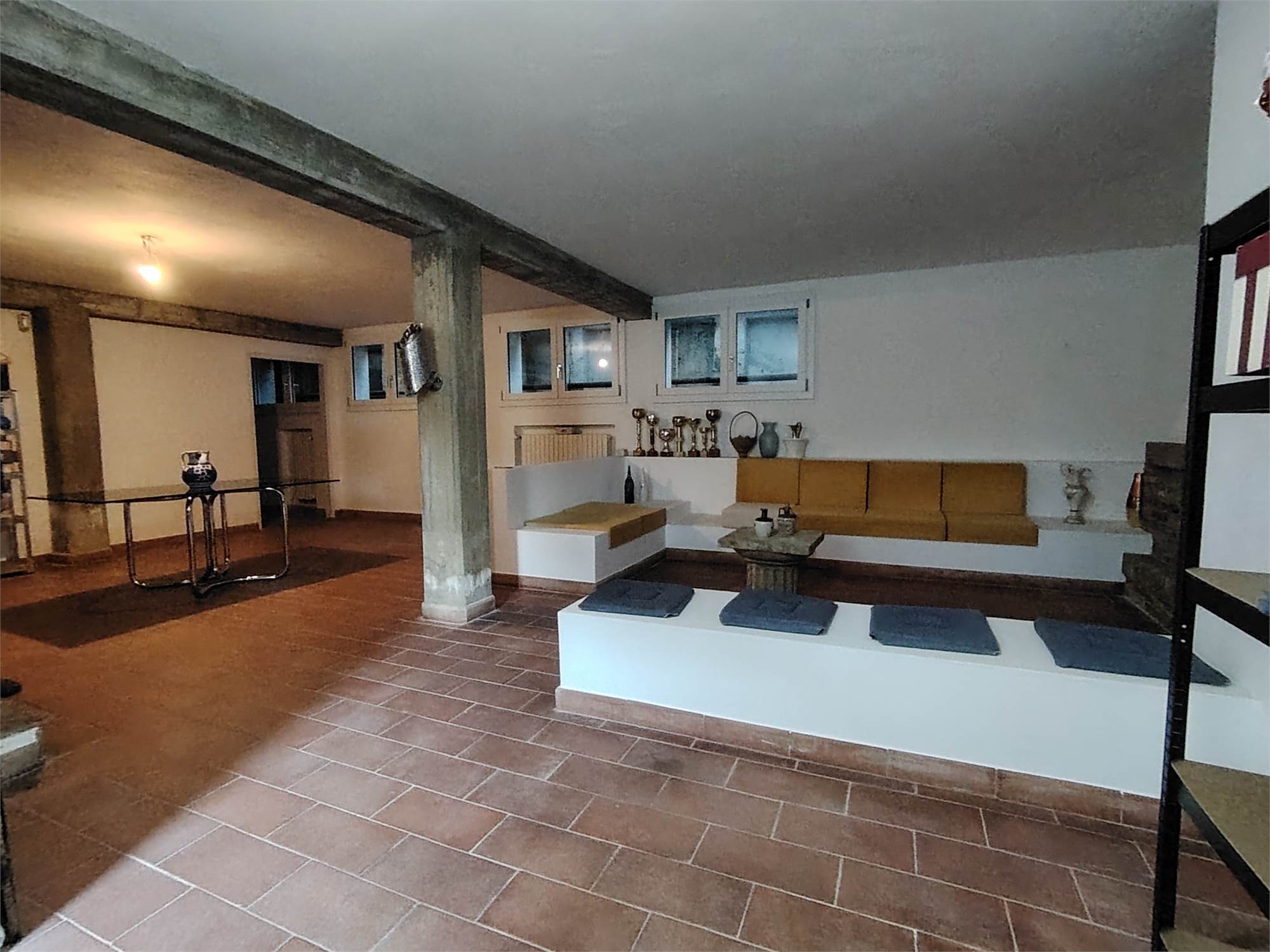 Scendendo le scale arriviamo all'ampissima taverna con camino e divani in muratura , terzo bagno/lavanderia , ulteriore ambiente utilizzabile in base alle esigenze abitative ( possibilità quarta camera ) e cantina.